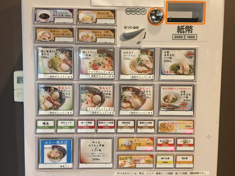 よく見れば和え玉にほうれん草麺orトマト麺と書かれている。おいおいここはサラダ屋か。健康志向系にビビりつつも品定め。