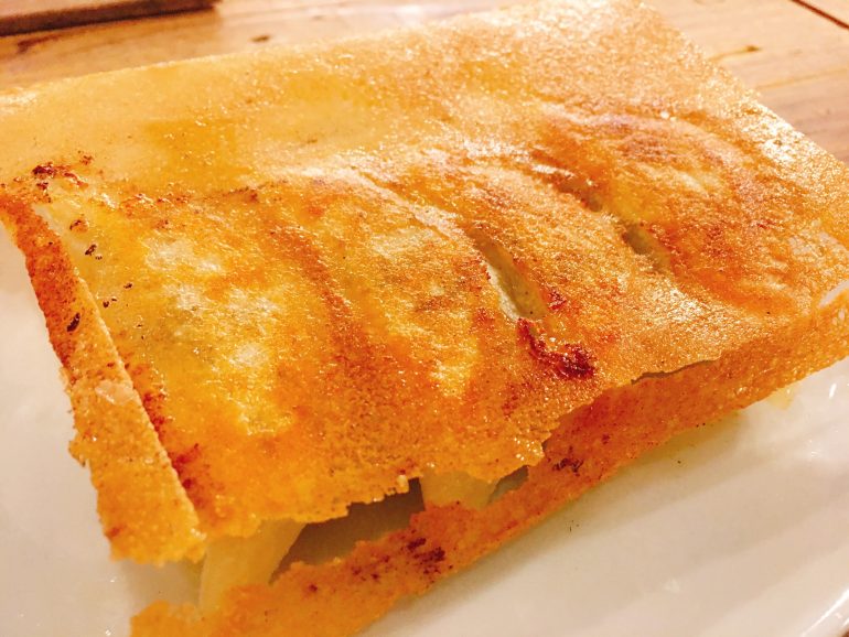 パリっと焼かれた皮は厚めでもちもち具合がすごい。そこに詰まった餡から肉汁がふわぁと流れ出てくる。香味は控えめ、明日の事を気にする必要はなさそうだ。