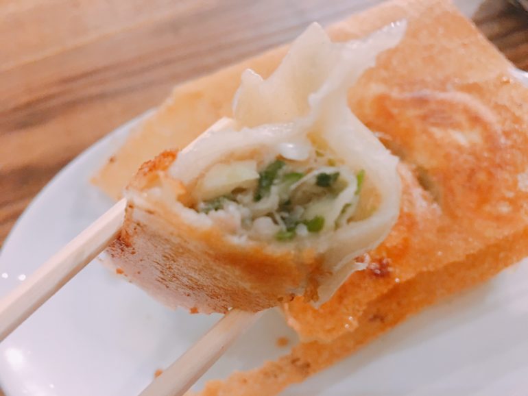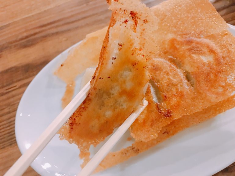餃子はそこまで大きくなく、女子でも二口でぺろりといけそうだ。箸を入れると羽がパリッと良い音を出す。良い色の焼き加減が食欲をそそる。