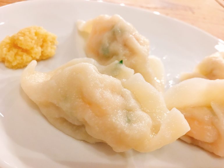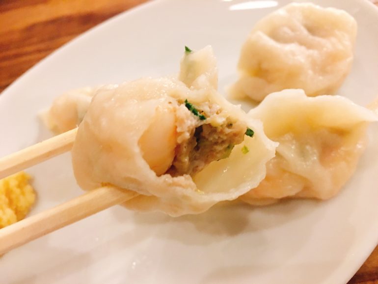 中の海老がぷりっぷりで存在感がある。こちらも肉汁がふわりと流れ出てきて厚めの皮を伝う。生姜がついてくるのでそれを付けて食べても美味しいが、個人的にはそのままが好きだ。