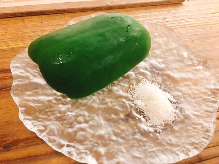 思案したが、最終的にはかぶりつくしかないという結論に至った。生野菜のバリっとした新鮮な音を立ててピーマンを咀嚼する。確かにバリバリだ。野菜特融の青さが美味しく、ピーマンの苦みは少なめ。フルーティとまではいかないが油のこってりに対しては非常に有効なおつまみだ。