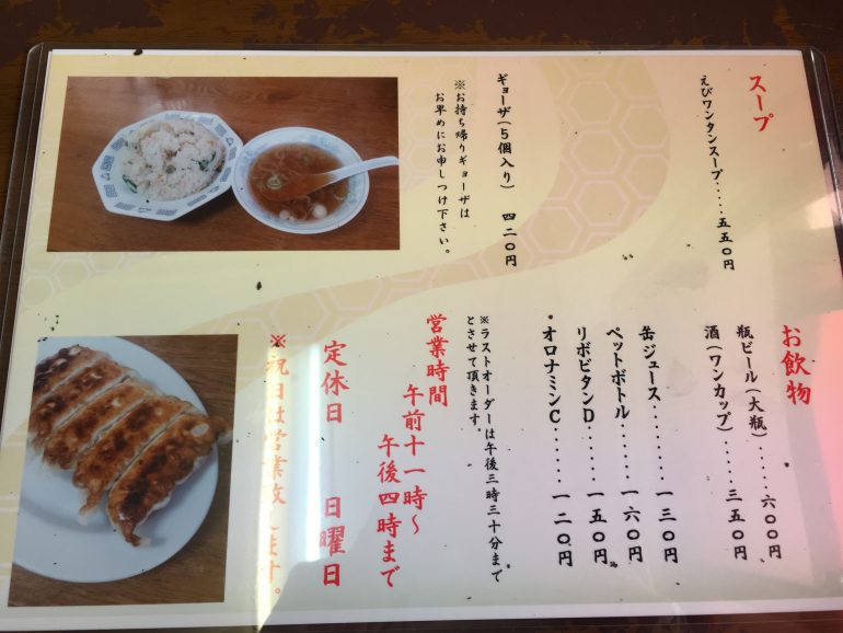 餃子もすごくおいしそうなのだがきっと食べきれないので、諦めた。お持ち帰りにしても良かったなぁと帰ってからちょっと後悔。