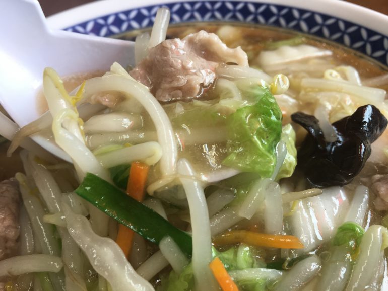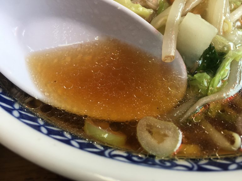 途中スープのしょうゆ味とあんの塩味が混ざっていくのだが、あっさり目なスープに比べ塩味が強く、野菜の旨味も溶け込んでスープが塩味のように感じるのが面白かった。