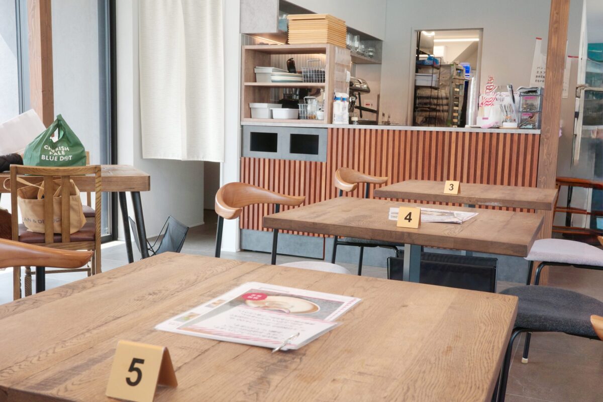 イートインスペースは左側にあり、ゆったりと過ごせる落ち着いた空間。
