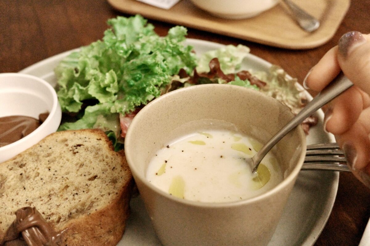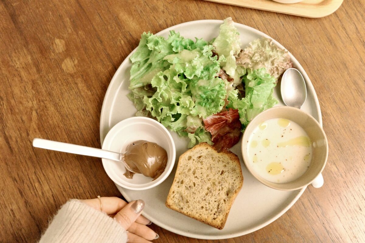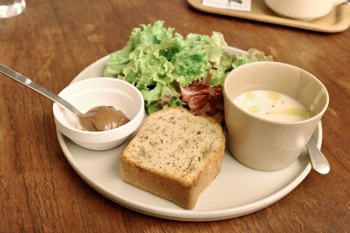 自家製バナナブレッド+葉野菜サラダ+ミニスープ付き