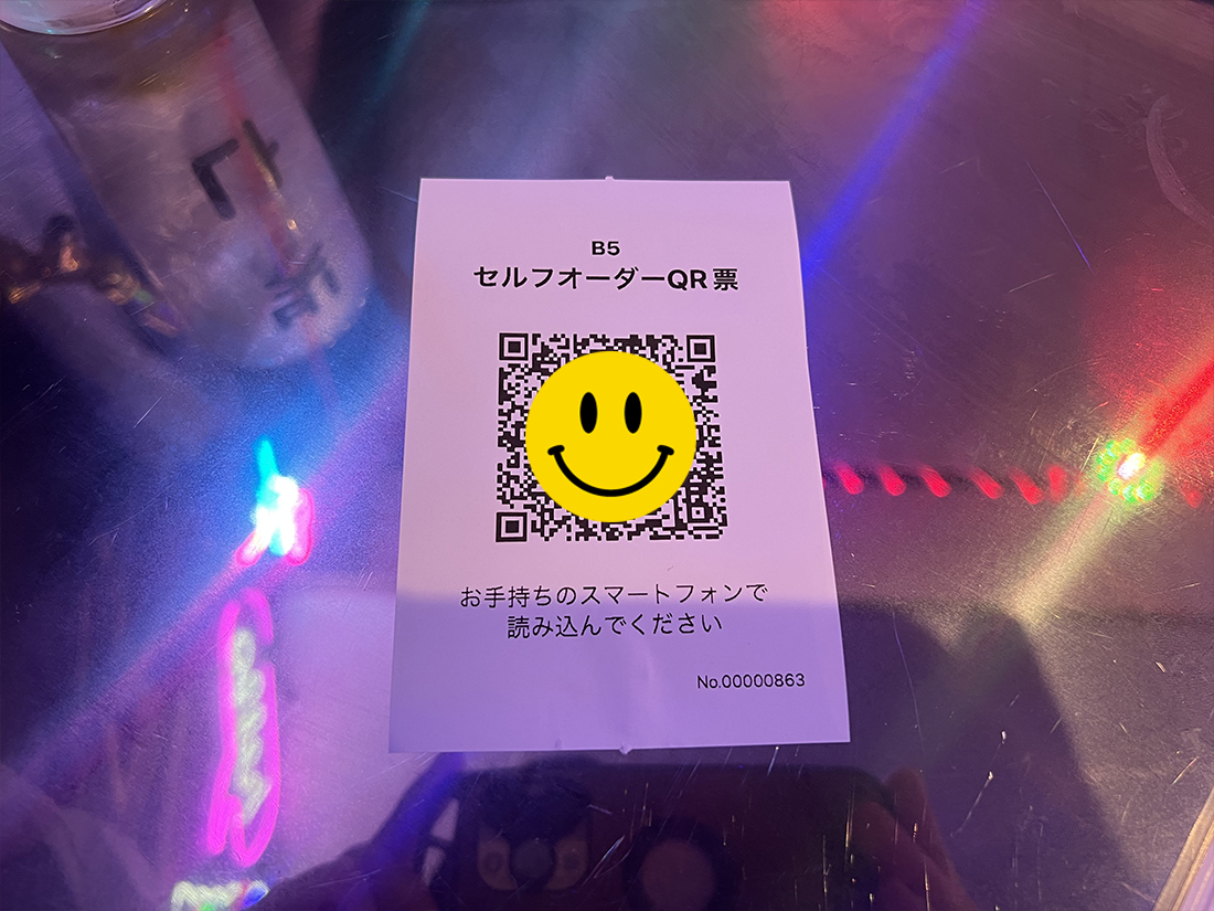 料理やドリンクの注文はテーブルに置かれたQRコードを読み取って、自分のスマホからも注文が可能です。もちろん、店員さんに直接お願いすることもできました。