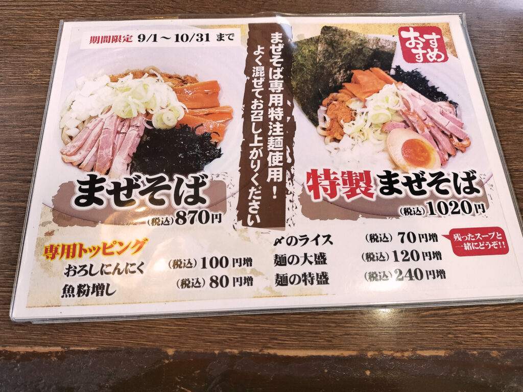 私、まぜそばに目がないんです!! まぜそばはパンチがあって、味が濃くてガツンと来て癖になるんですよね。これは行くっきゃないと思い、早速入りました。