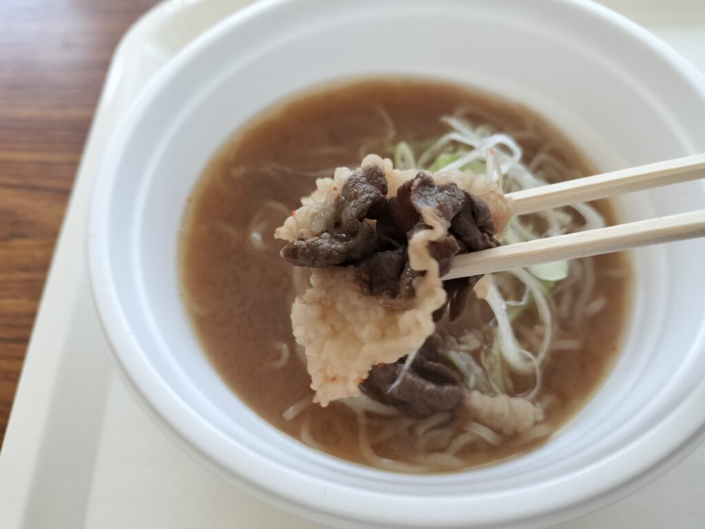なんと、熊肉のそばが売っていました!ジビエだと、馬肉と鹿肉は食べたことがありますが、熊肉は食べたことがありません。実食です。