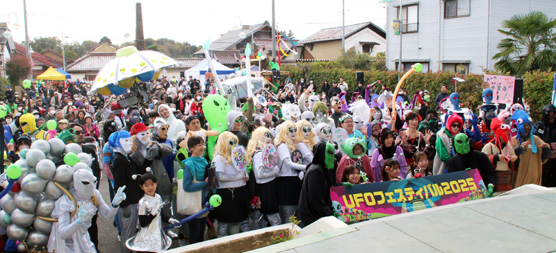 11/8(土)、秋晴れの下、宇宙人との共生による人口減少対策を目指す飯野町で、UFOフェスが開催されました。