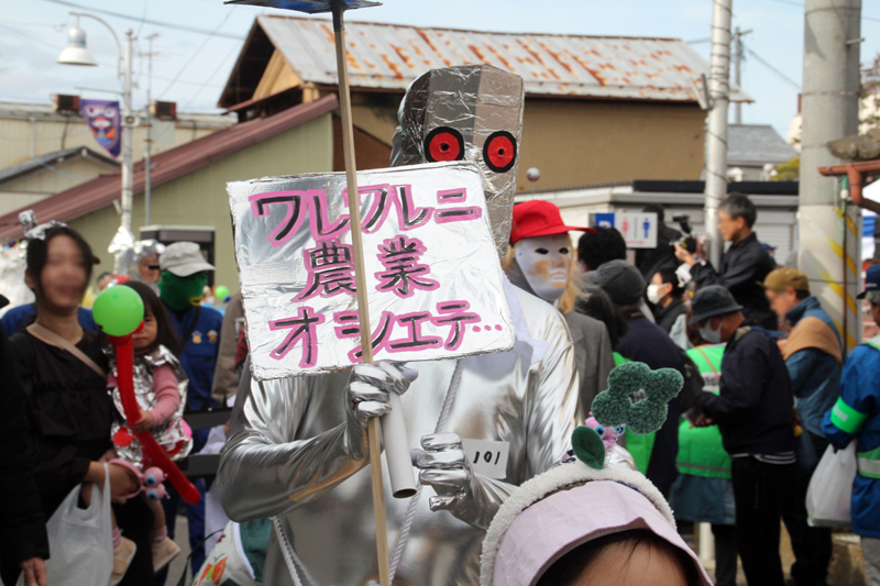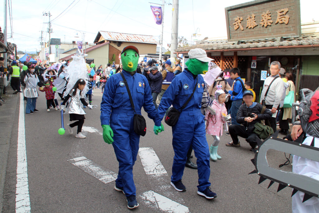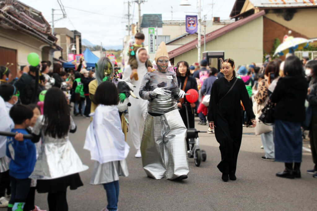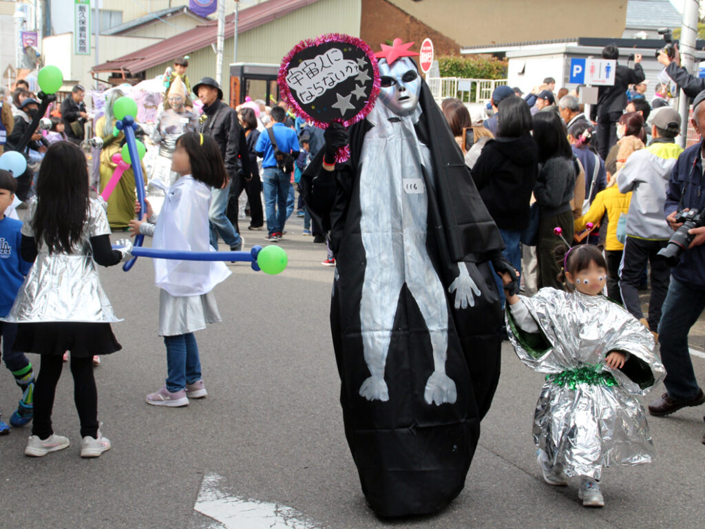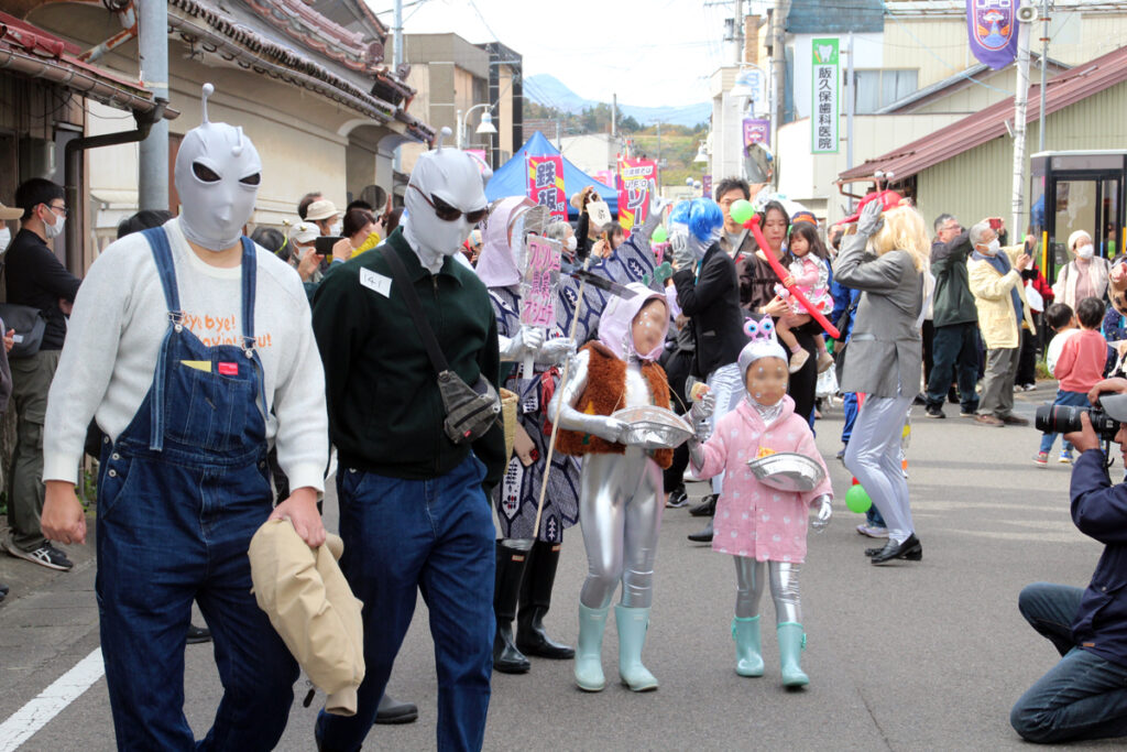 入賞発表の後は、宇宙人の皆さんは飯野町商店街を練り歩きました。