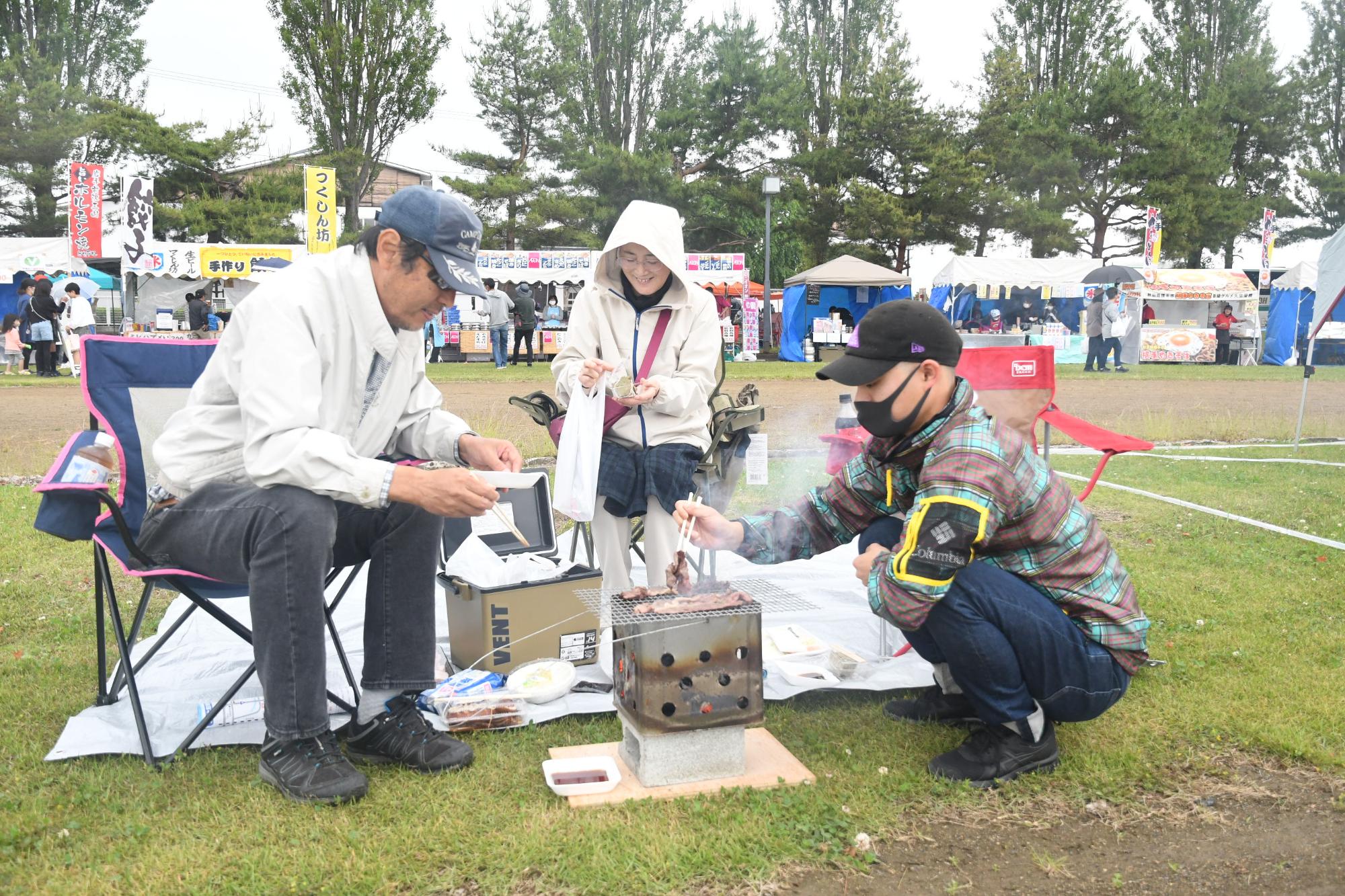 このイベントの楽しさは何と言っても、買った前沢牛を、その場で焼いて食べる。