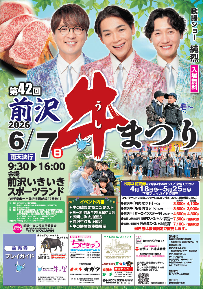 - お問合せ先:TEL:0197-34-0263 (前沢牛まつり実行委員会)