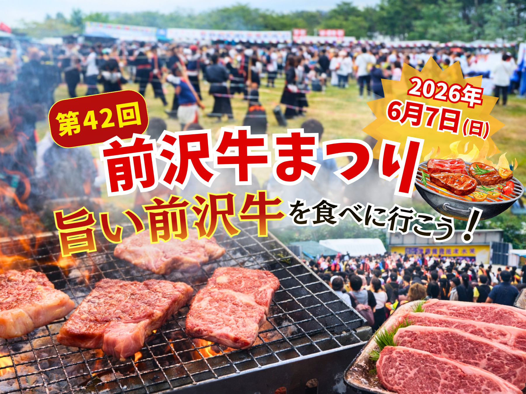 最高級の黒毛和牛でもある【前沢牛(まえさわぎゅう)】をその場で焼いて食べる『第42回前沢牛まつり』が2026年6月7日(日)に開催するみたい。