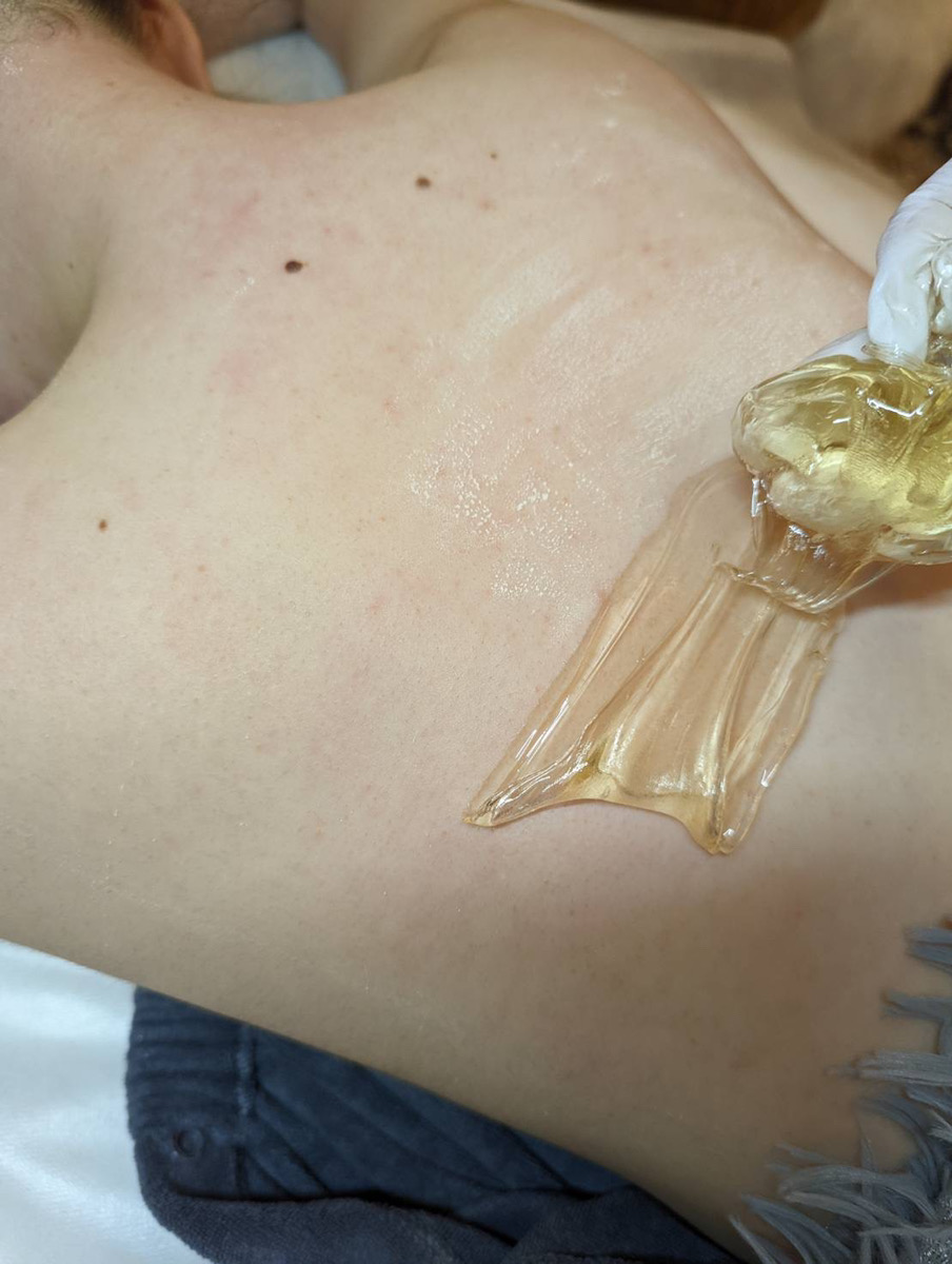 ワックス脱毛と比較されやすいシュガーリングですが、素材が全然違うため肌がフワッとした仕上がりになるのが特徴。