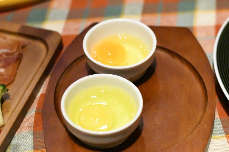 普通のオムライスと違い黄身が白い珍しい卵を使用したオムライスです。