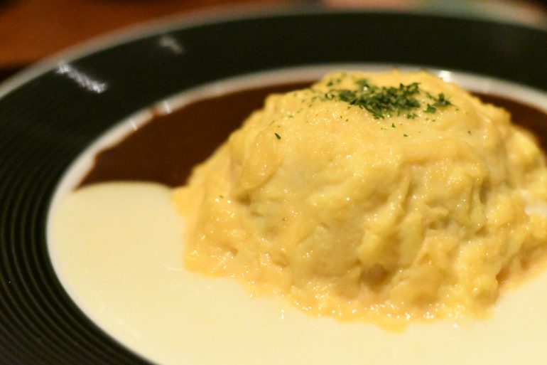 ハンバーグやパスタ、ドリア等の中で注目したいのが白い卵のオムライス。