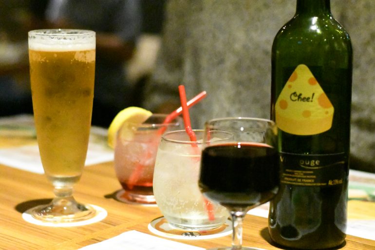 他にドリンクは定番のビールもあり、Love&Cheese!!さんならではのチーズフレーバーのカクテル(右から2番目)や同じチーズフレーバーノンアルコールのカクテル(右から3番目)も豊富にありました!