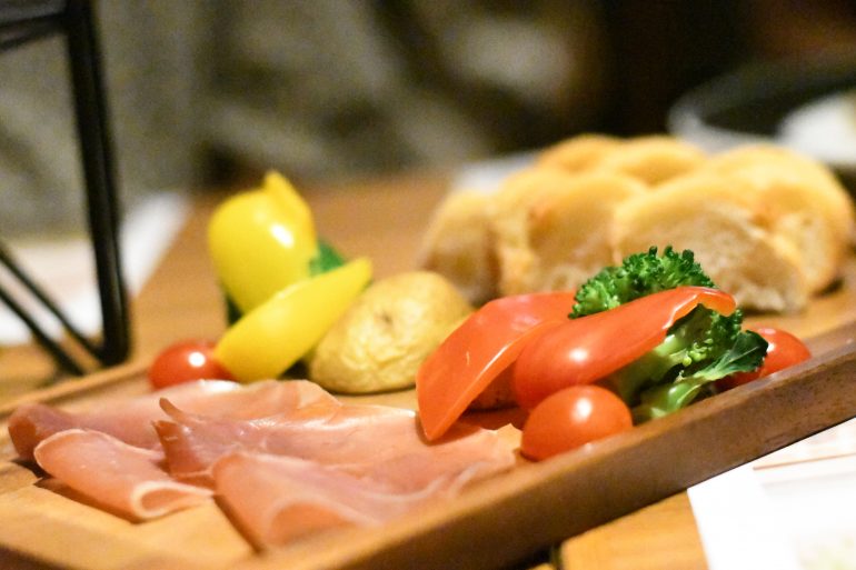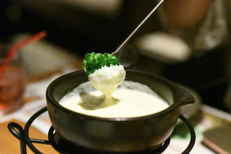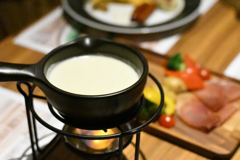チーズは4種類も使われているのですが、白ワインのおかげか濃厚な見た目なのに美味しくて次々ディップしたくなっちゃいます。ちょっと火力が弱いかなとも思ったのですが、猫舌には嬉しい程よい熱さ。