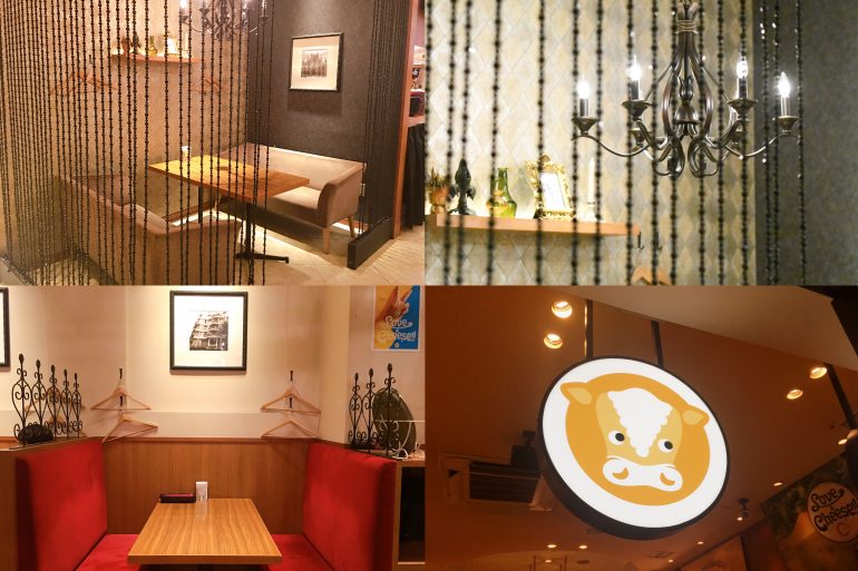 高級感溢れる店内は真っ赤なソファーや輝くシャンデリアがとってもキレイ。入り口ではメインキャラクターのラブチ君がお出迎えしてくれています。
