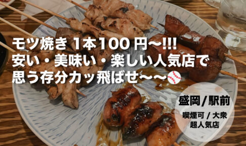 【盛岡】安くて旨くてカッ飛ばす! 盛岡の超人気もつ焼き屋で仙台の友人と飲み明かす「もつ焼き ホームラン」〜岩手県盛岡市〜